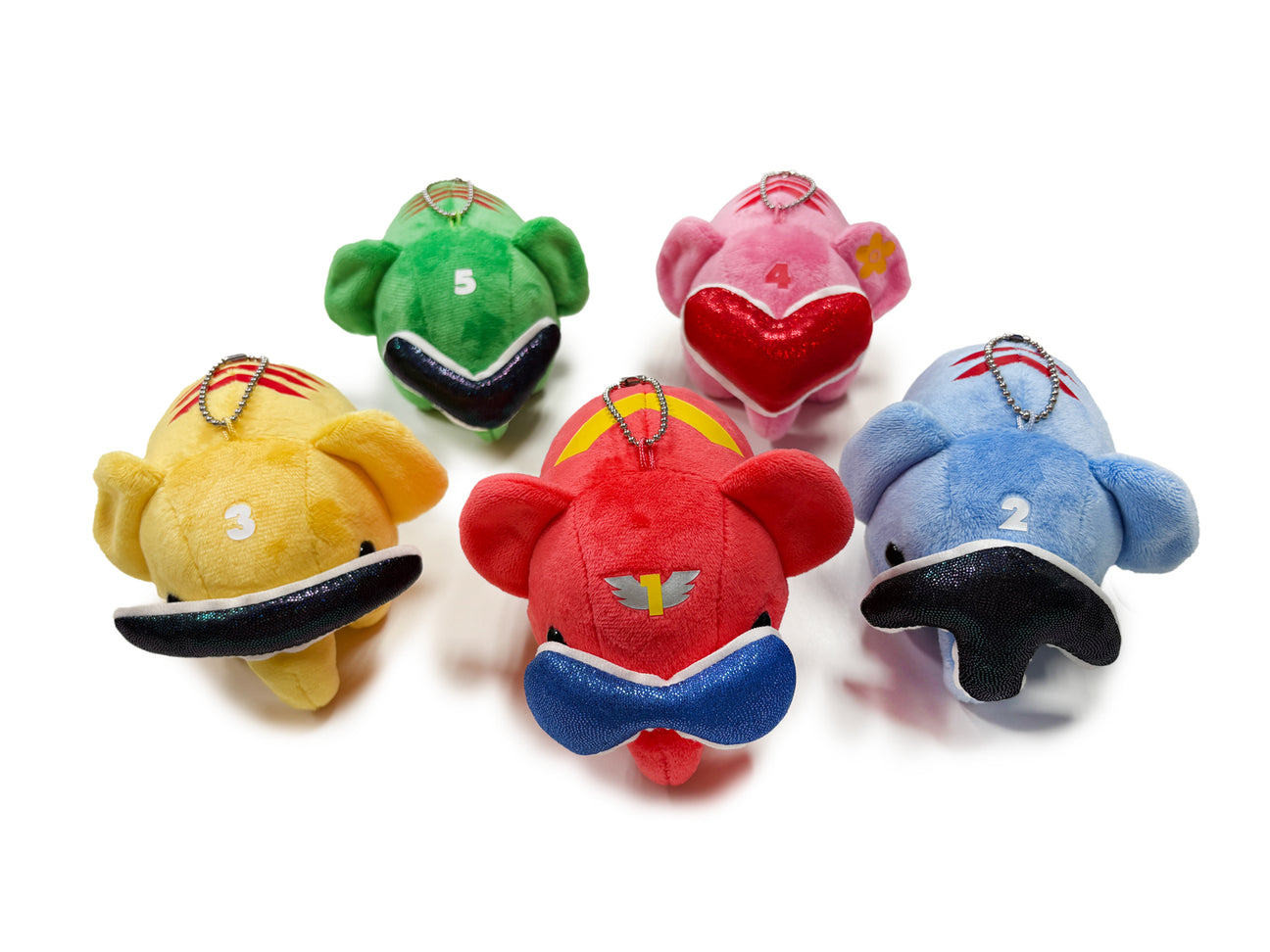 さらに見逃せないのが、ドムドムのマスコットキャラクター「どむぞうくん」がゴレンジャーカラーに変身した、ボールチェーンぬいぐるみ(全5種)です。